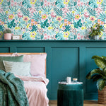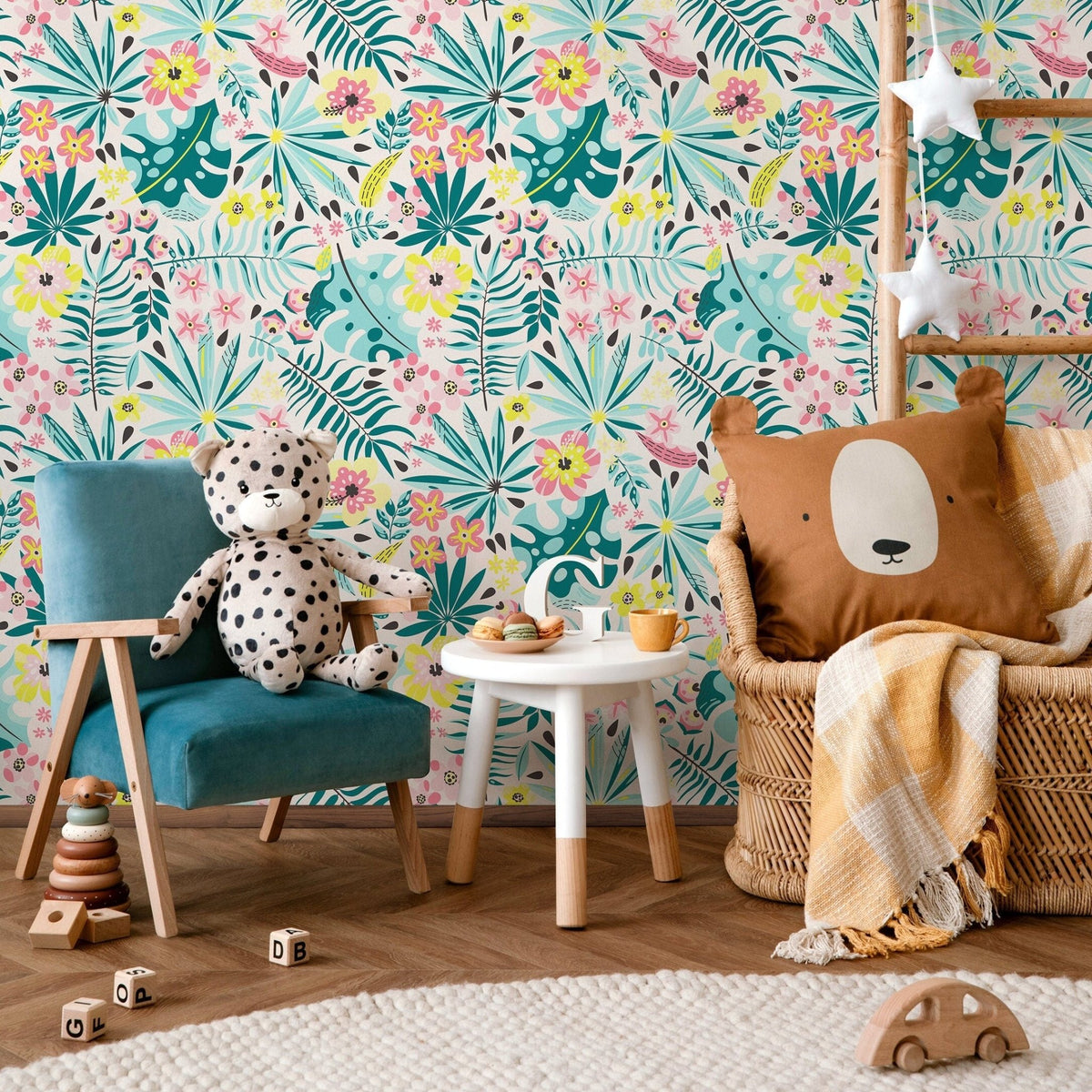 Introduce a touch of paradise into your space with our Tropical Bliss Wallpaper. This design features a vibrant selection of hand-painted flowers and lush foliage to create an immersive tropical ambiance. Perfect for any room looking to capture the essence of nature, the wallpaper includes an array of botanical patterns with florals and leaves in shades of pink, yellow, and various tones of green. Large palm leaves juxtapose smaller florals, creating a dynamic and organic feel that's versatile for both contemporary and traditional decors. Each roll is meticulously crafted to ensure a repeatable pattern that's easy to align. The Peel and Stick option offers a convenient, damage-free installation, whereas the Traditional wallpaper provides a classic application for those preferring a more permanent solution. Invigorate your living room, bedroom, or even a commercial space with this fresh, nature-inspired design that promises to bring life and color to your walls.