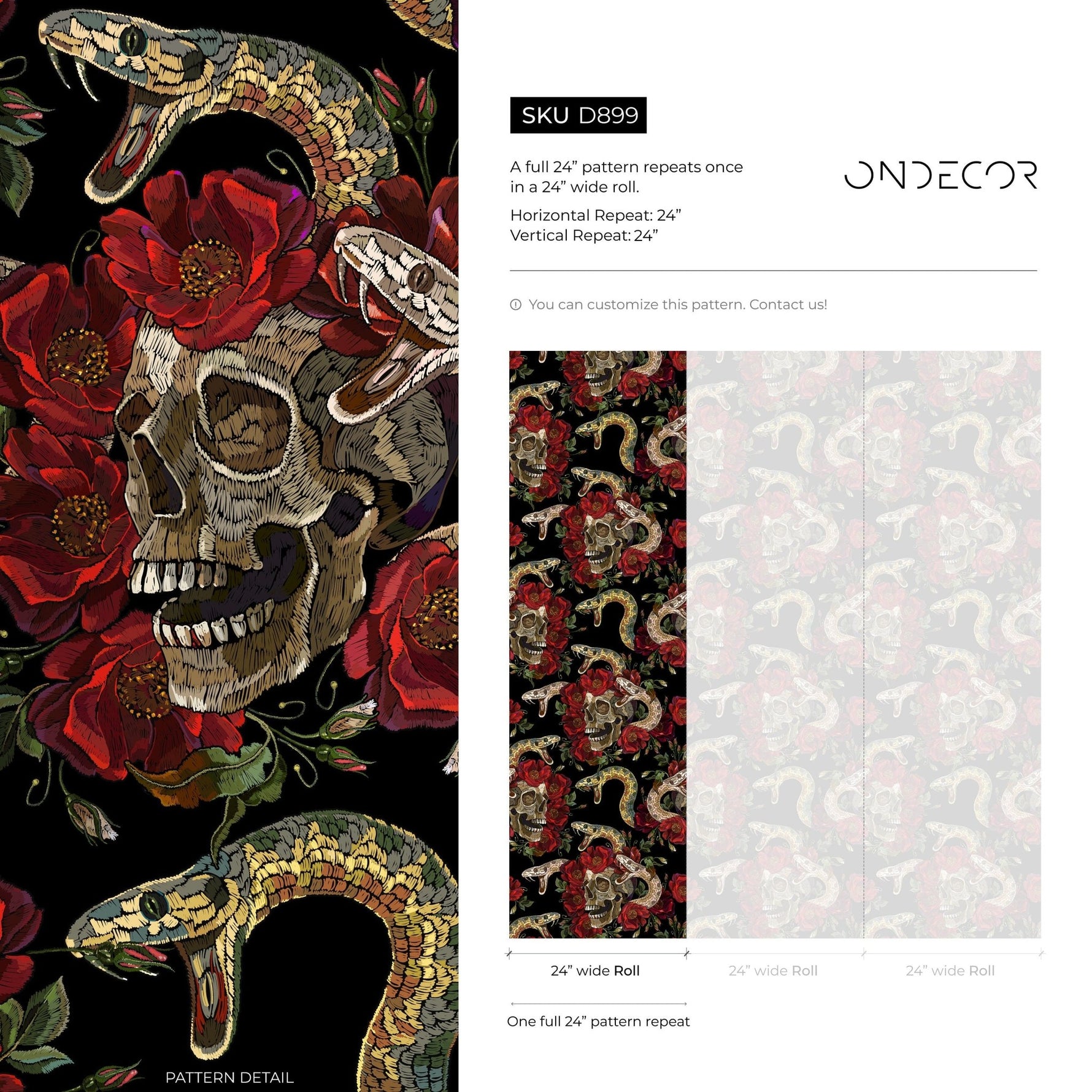 Skull and Snake Wallpaper Dark Floral Wallpaper Peel and Stick and Traditional Wallpaper - D899