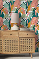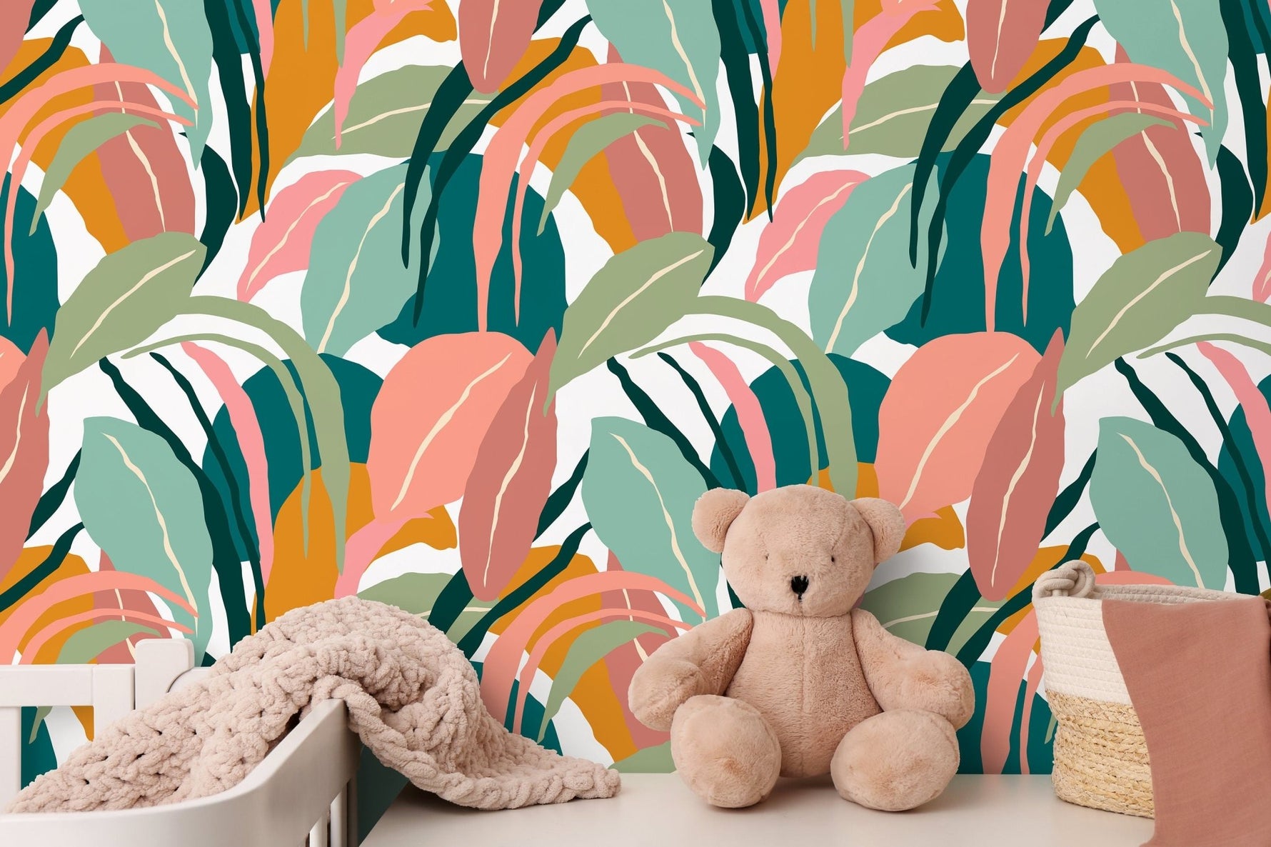 Revitalize any space with the 'stylized Foliage Wallpaper\', a design that artfully melds the tranquility of nature with a modern artistic twist. Perfect for creating a fresh and inviting atmosphere, this wallpaper features an array of hand-drawn leaves in a palette that balances soft pinks, calming greens, and warm coral shades. Each leaf is intricately designed, boasting a variety of shapes and forms that create a dynamic and organic look. This wallpaper is ideal for those who wish to bring the essence of the outdoors into their living space while maintaining a trendy and up-to-date style. The matte finish enhances the gentle hues, providing depth and sophistication to your walls. Whether you\'re looking to revamp a bedroom, transform a home office, or add a statement wall to your living area, the 'stylized Foliage Wallpaper\' offers an effortless solution that is both easy to apply and durable. With options for Peel and Stick or Traditional application, this versatile product caters to both homeowners and renters seeking a fuss-free way to inject personality into their décor.