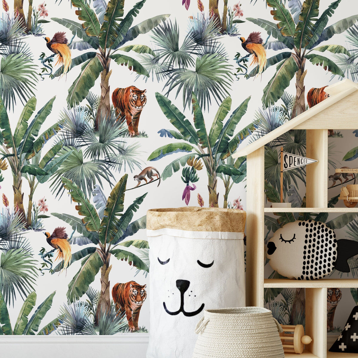 Tropical Jungle Wallpaper Botanical Wallpaper Peel and Stick and Traditional Wallpaper - D645