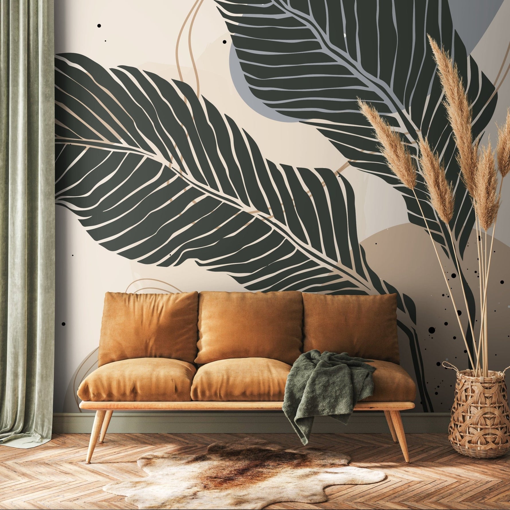 Infuse your space with the serene beauty of our Tropical Leaf Elegance Wallpaper. This design features delicate, hand-drawn tropical leaves that bring a touch of nature indoors. The soft color palette comprising of cream, beige, dark green, and subtle grey hues creates a tranquil and inviting environment, making it an excellent choice for bedrooms, living rooms, and bathrooms. The organic pattern is versatile enough to complement both modern and traditional decors, while the high-quality paper ensures durability and ease of application. Whether you opt for the convenience of Peel and Stick or prefer the classic approach of Traditional wallpaper, our Tropical Leaf Elegance design will elevate your home aesthetics with its natural elegance and refined simplicity.
