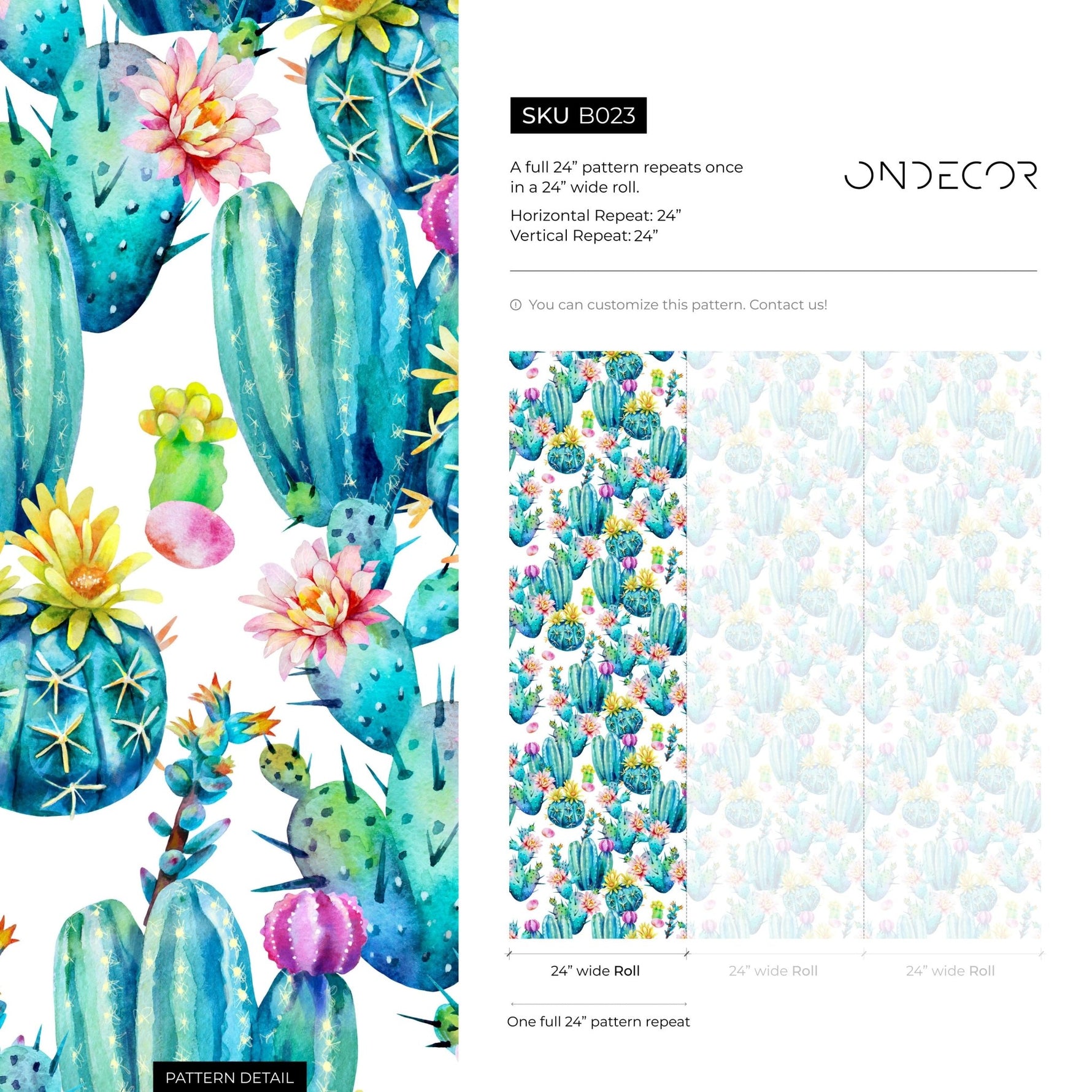 Bring the warmth and vitality of the desert into your home with our Vibrant Cacti Watercolor Wallpaper. This lively design features an array of watercolor cacti in full bloom, showcasing their unique shapes and varying shades of green, blue, pink, and yellow. The playful yet sophisticated pattern creates a dynamic and inviting atmosphere in any room, perfect for those looking to add a touch of nature-inspired charm to their living space. Each cactus is painted with exquisite detail, making the wallpaper a true piece of art that's both eye-catching and serene. Ideal for accent walls, powder rooms, or a full room makeover, our high-quality wallpaper is easy to install, whether you choose the peel and stick option for temporary decor or the traditional wallpaper for a more permanent solution. Let our Vibrant Cacti Watercolor Wallpaper transport you to a sun-soaked landscape, infusing your walls with life and a burst of color.